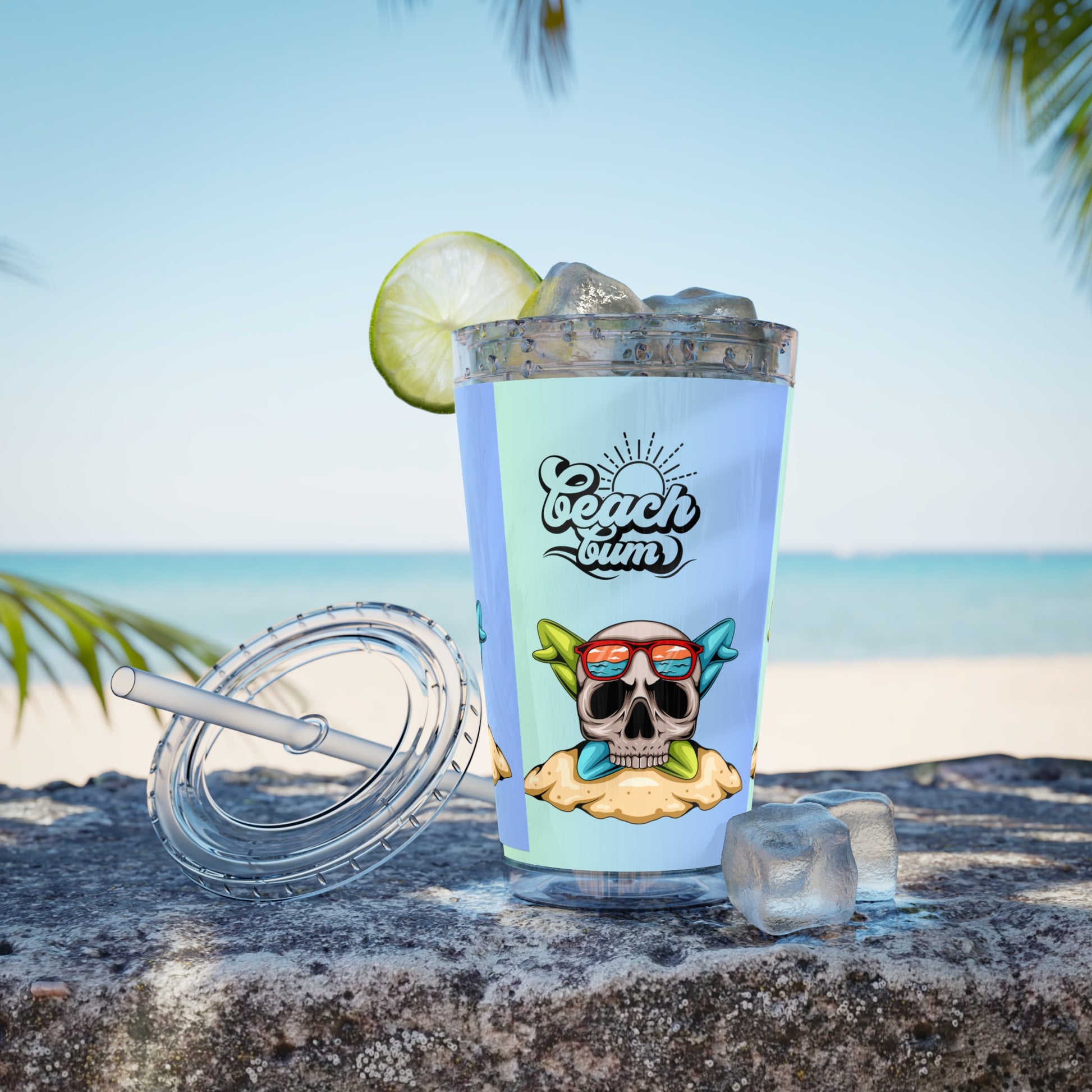Beach Bum Tumbler, Skull Design Insulated Drinkware, Summer Vibes, Reusable Straw Cup, Travel Mug,Dainty Gift, Outdoor Fun