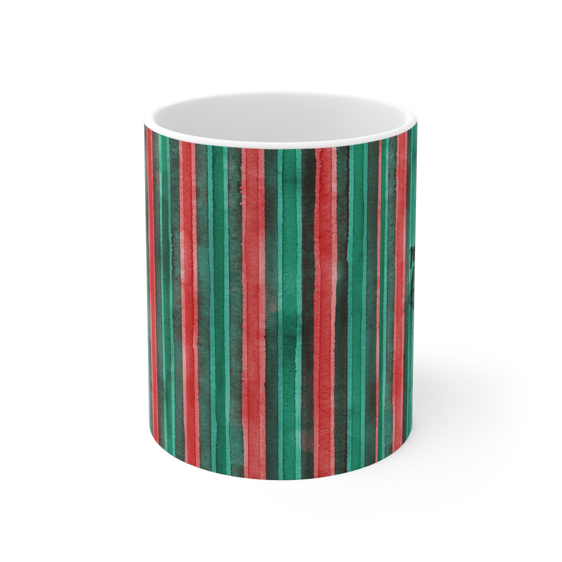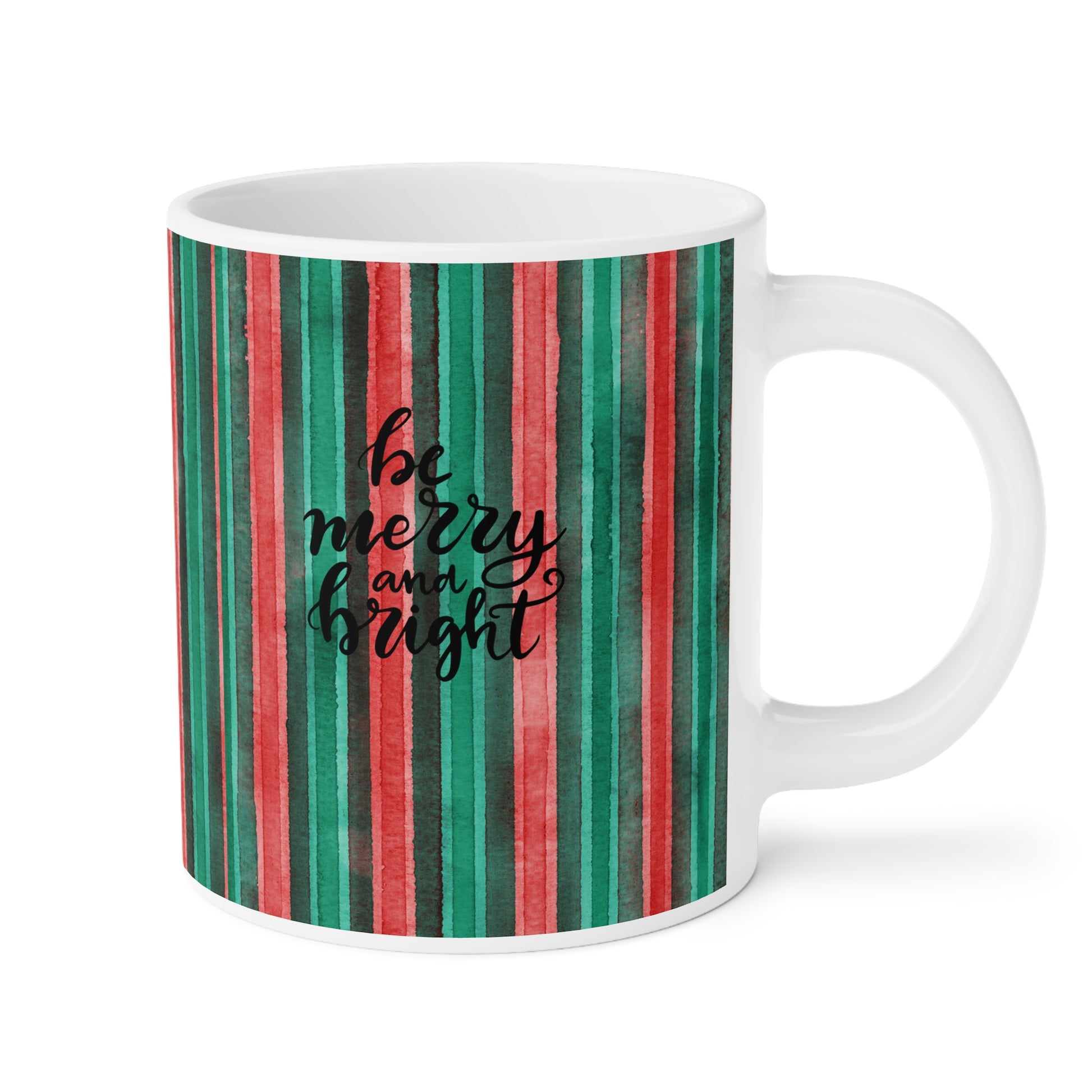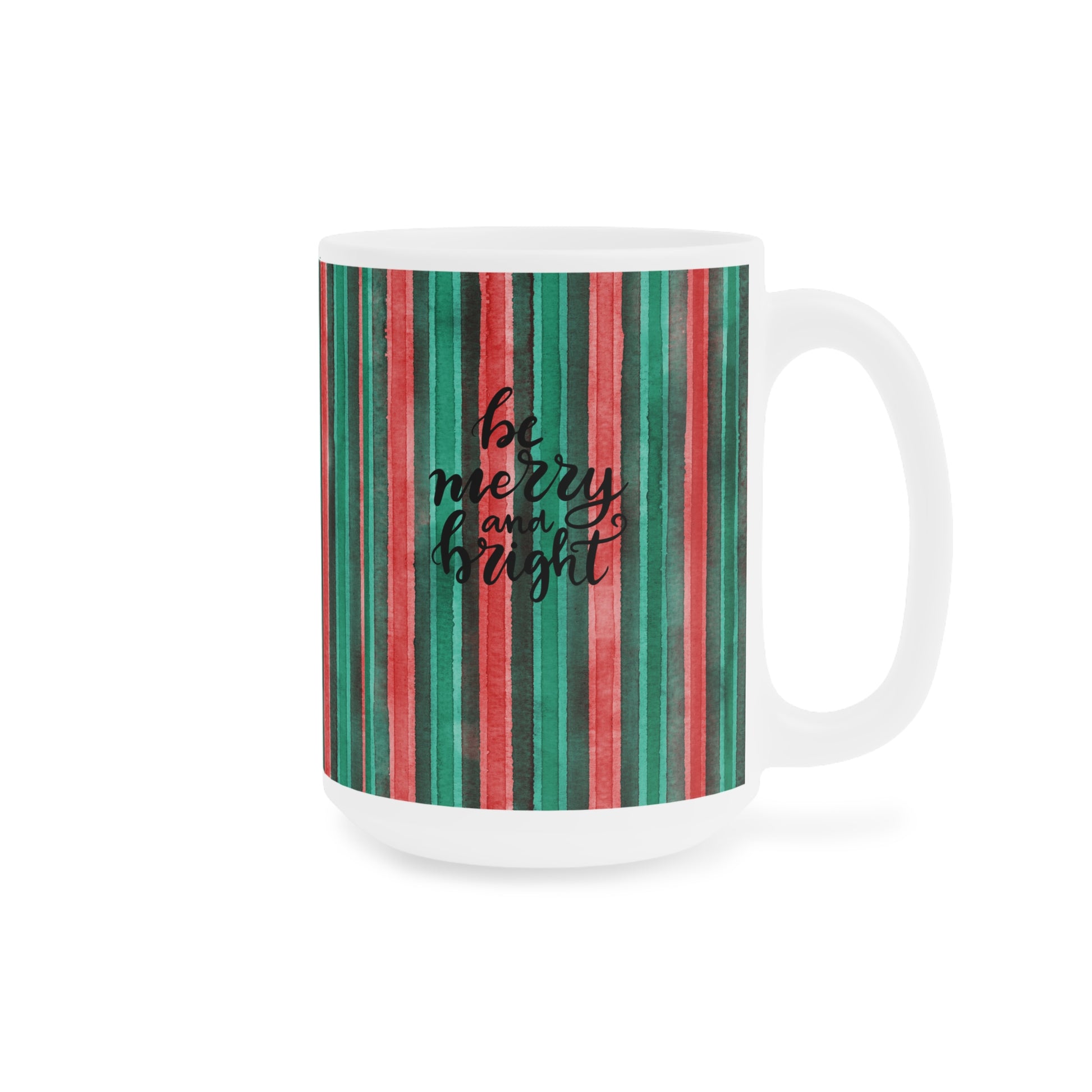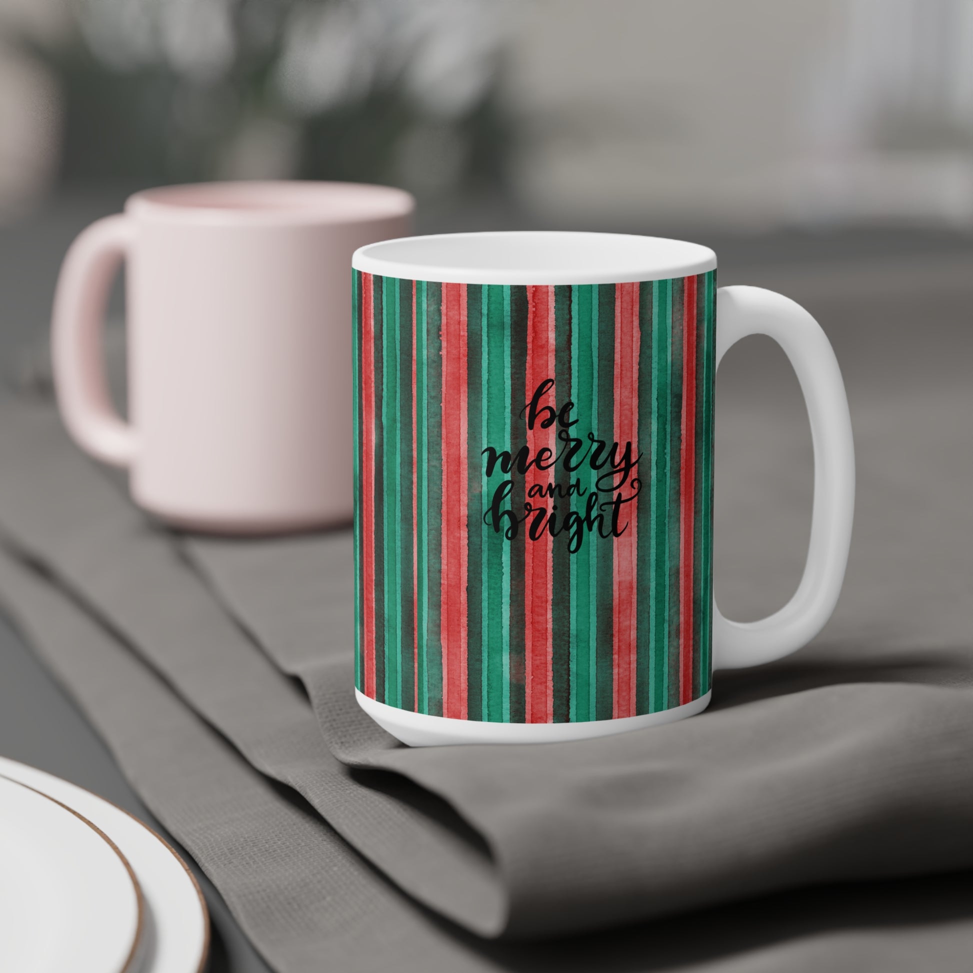 Christmas Stripe Mug — 'Be Merry and Bright' Holiday Ceramic Coffee Cup