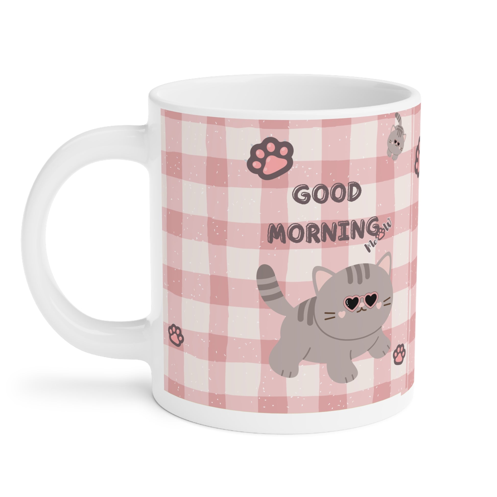 Start your day with a smile using this adorable ceramic mug! Featuring a charming design that celebrates playful cats against a cheerful pink checkered background, this mug radiates warmth and happiness. Perfect for cozy mornings or as a delightful gift for any cat lover, it brings a touch of whimsy to your coffee or tea ritual. Ideal for everyday use, this mug is a lovely addition to your kitchen or office. Whether you're sipping your favorite beverage during a relaxing weekend or making your work-from-home setup a bit brighter, this mug fits perfectly into your life. Great for celebrations like birthdays or holidays such as National Cat Day, it will surely be a hit among friends and family who appreciate unique and joyful aesthetics.