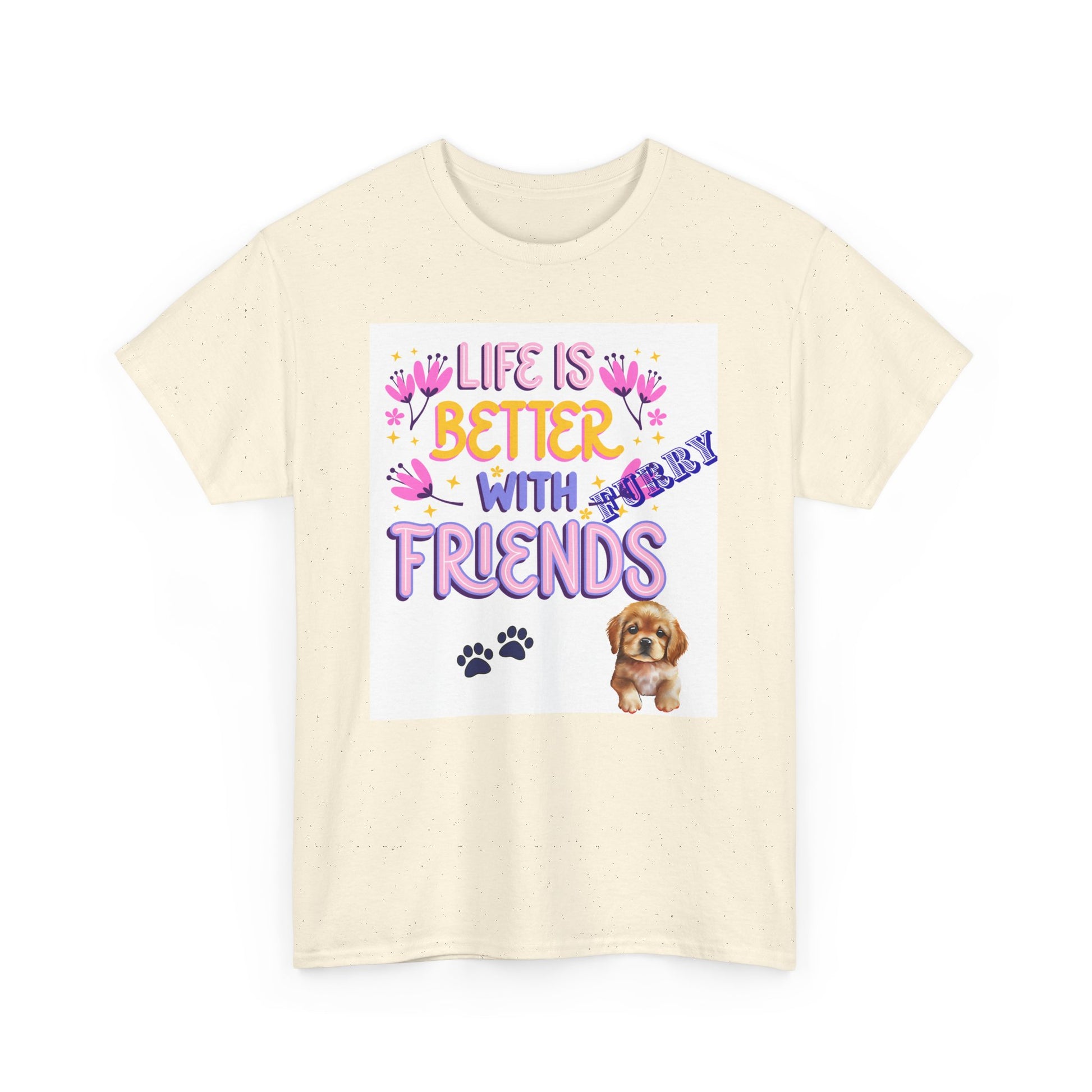 Life is Better With Friends Unisex Heavy Cotton Tee, Dog Lover Shirt, Gift for Friends, Cute Animal Humor Tee, Pet Owner Apparel