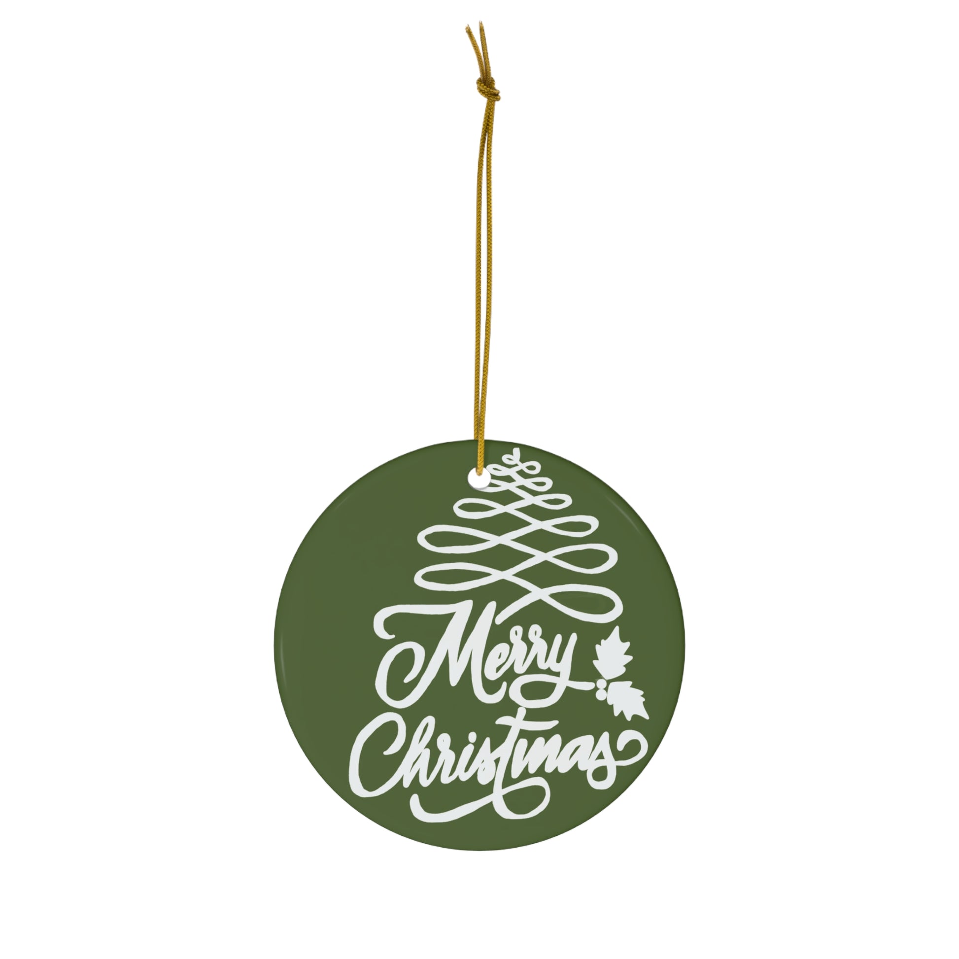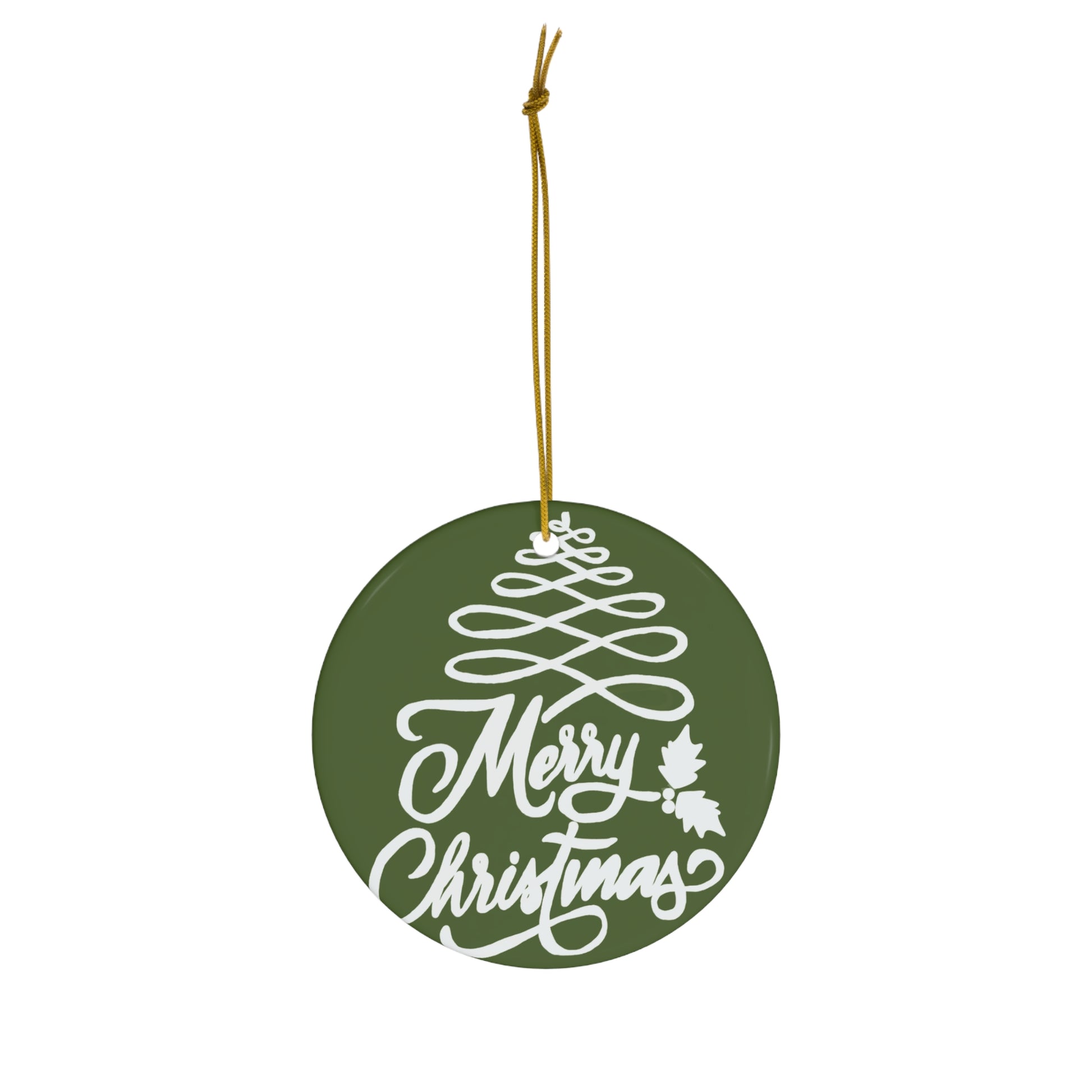 Merry Christmas Ceramic Ornament – Green Hand-Lettered Holiday Tree Ornament