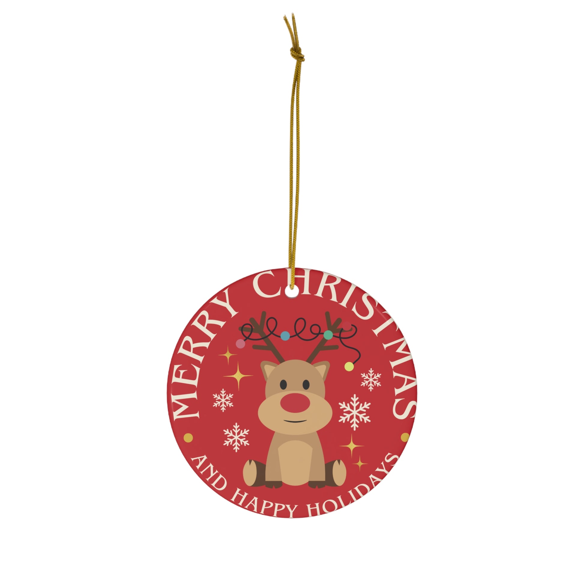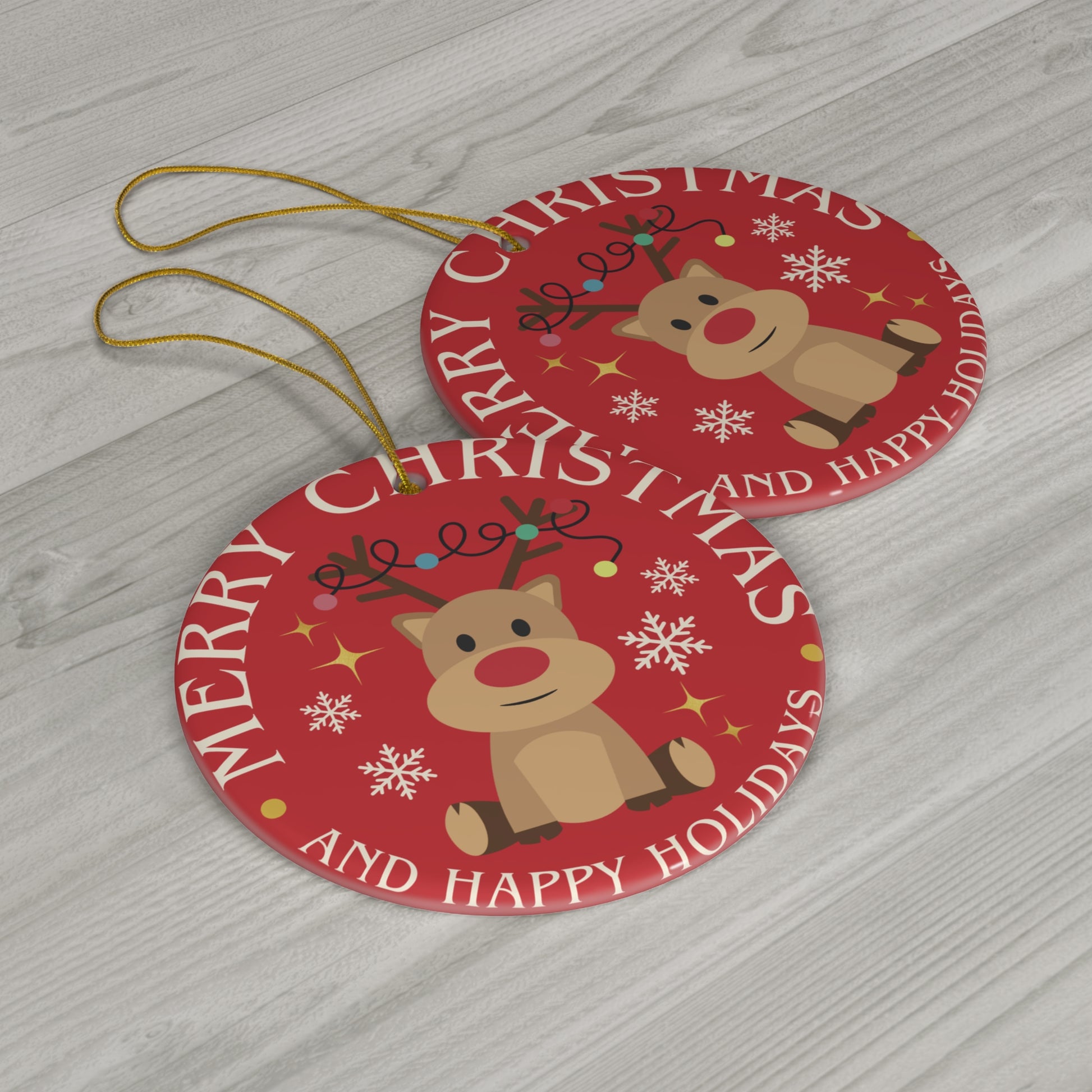 Merry Christmas Reindeer Ceramic Ornament — Cute Holiday Tree Decoration