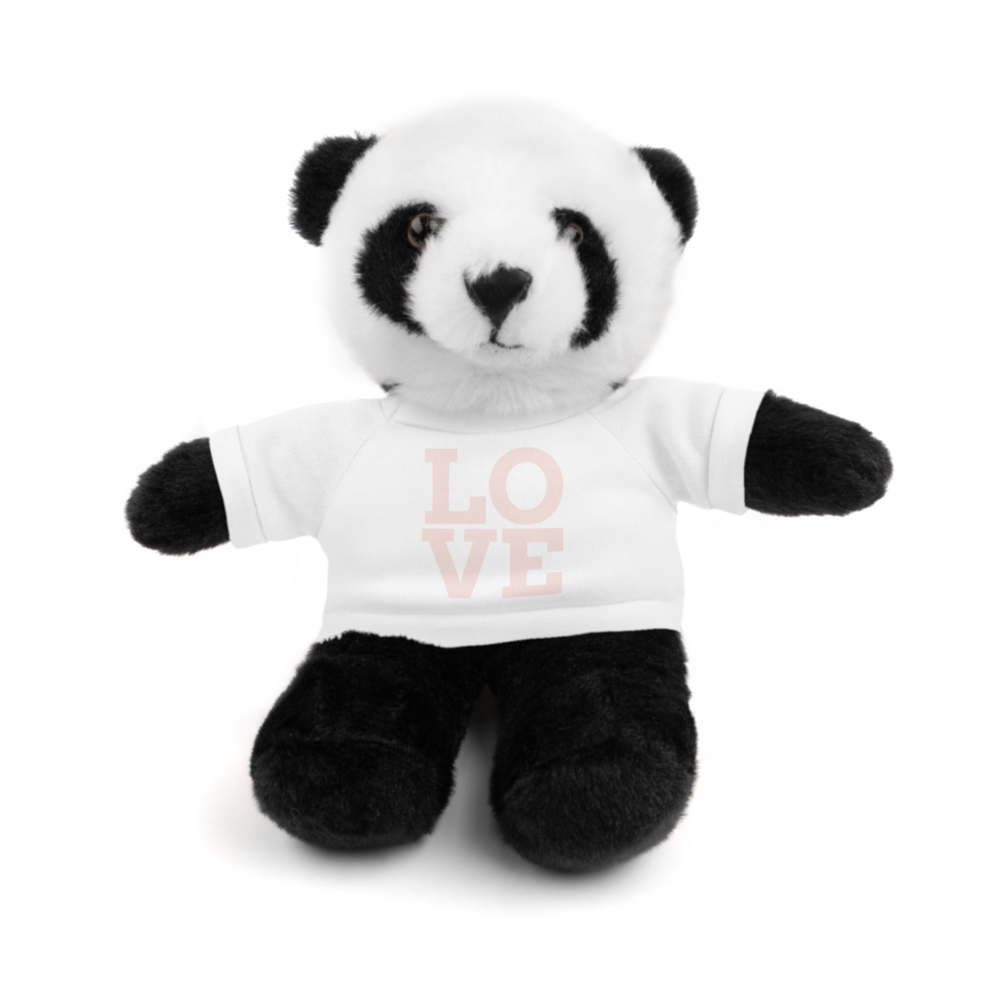 Created to put ear-to-ear smiles on any child, these stuffed animals come with a playful attitude and customizable tees. Each plushie is 8" tall, features polyester and plastic pellet stuffing, while their tees are 100% cotton. Perfect for ages 3+. Available animals: Panda, Lion, Bear, Bunny, Jaguar, and Sheep.