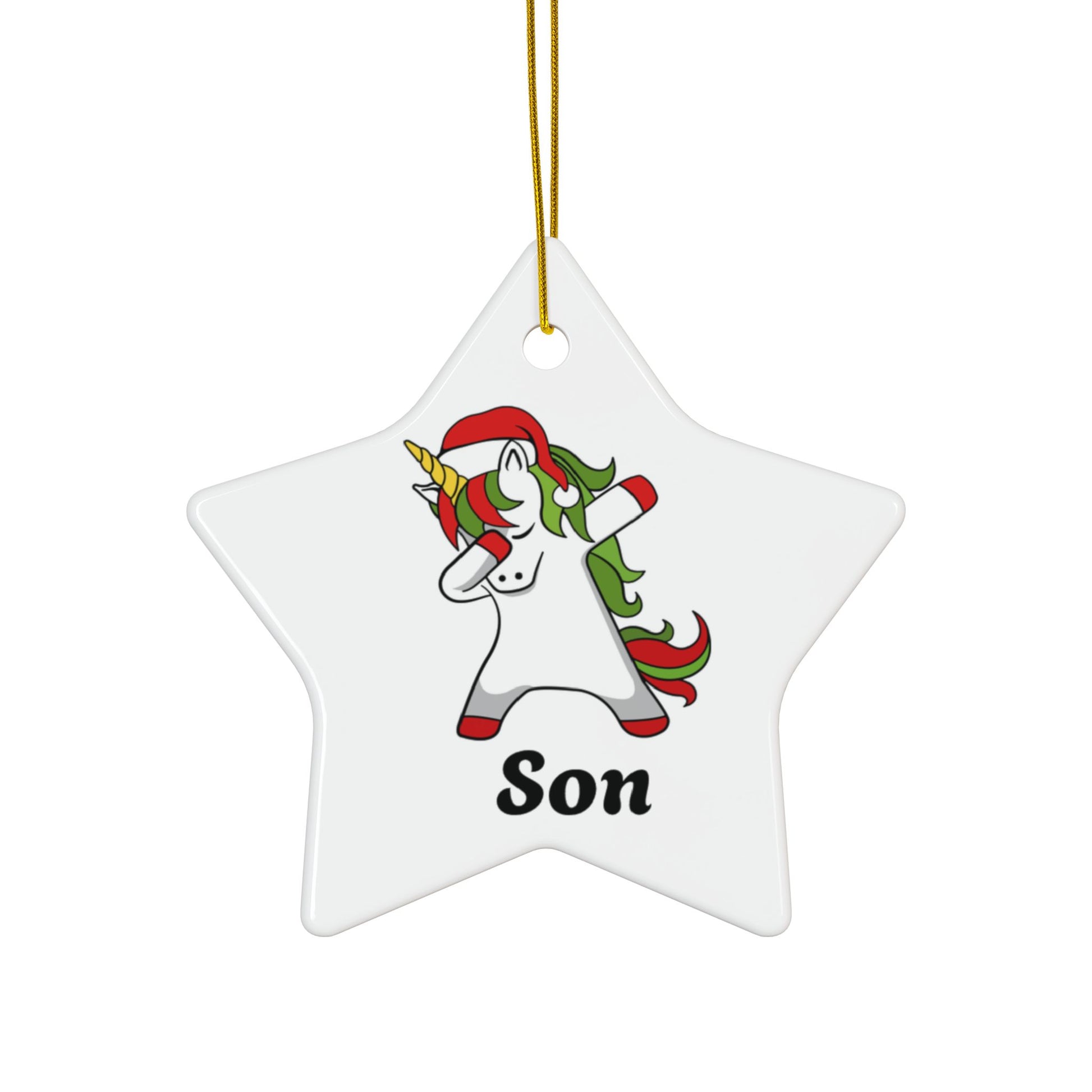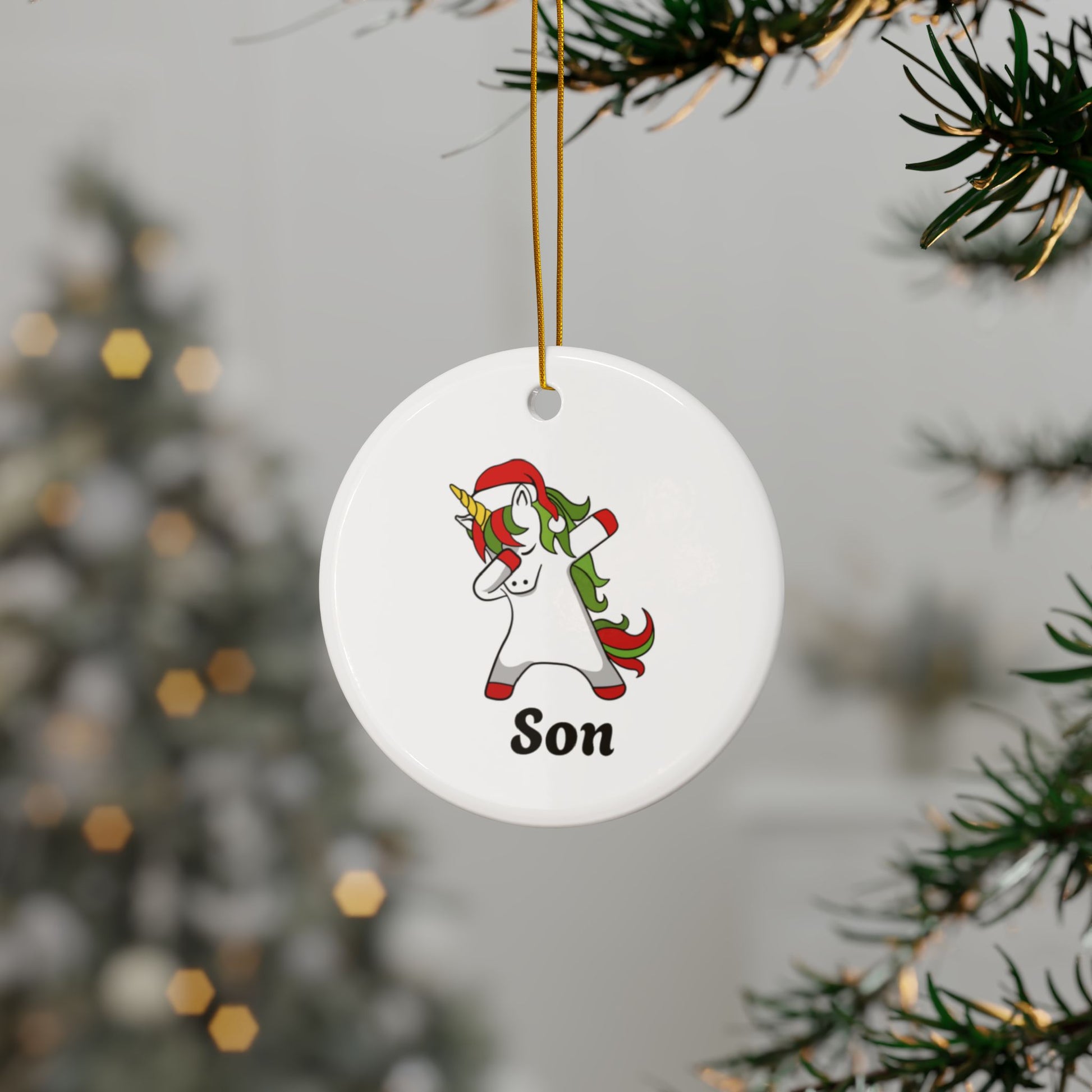 ‘SON’ Christmas Unicorn Ceramic Ornaments, 2-Side Print, (1pc, 3pcs, 5pcs, 10pcs)