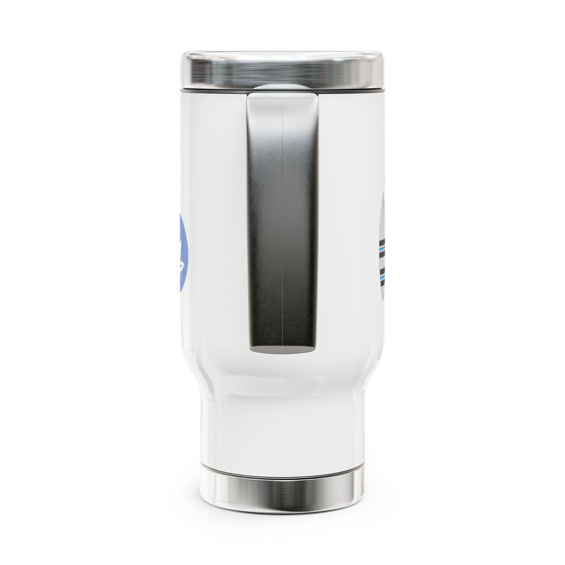 Surfing Vibes Stainless Steel Travel Mug, 14oz Coffee Tumbler, On-the-Go Drinkware, Beach Lover Gift, Summer Road Trip Must-Have
