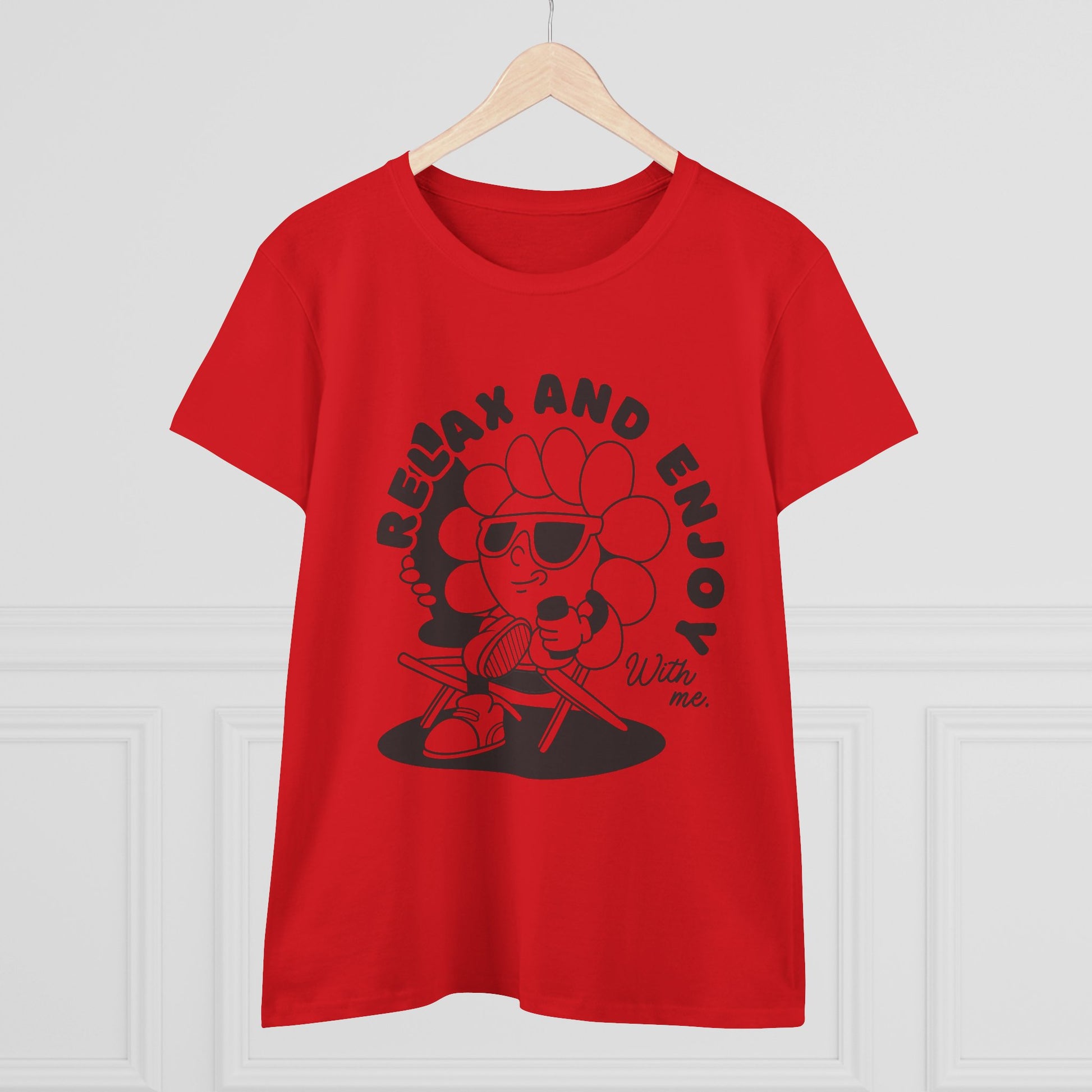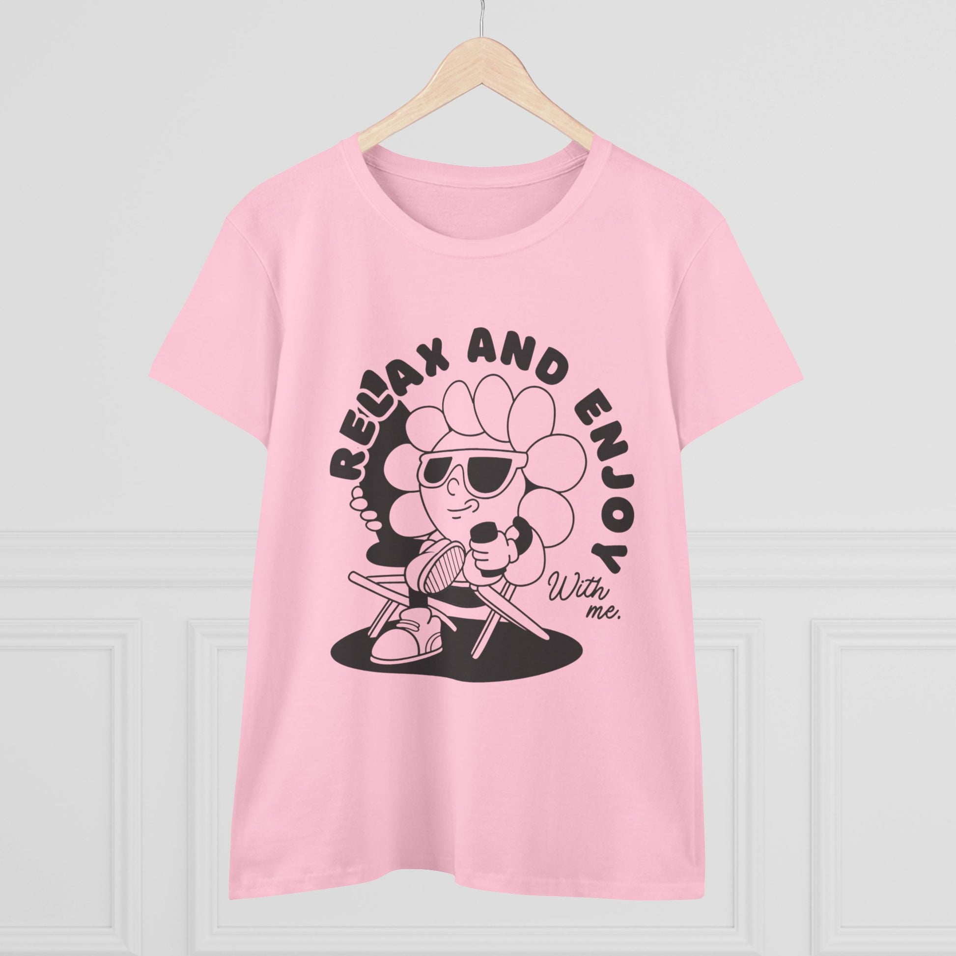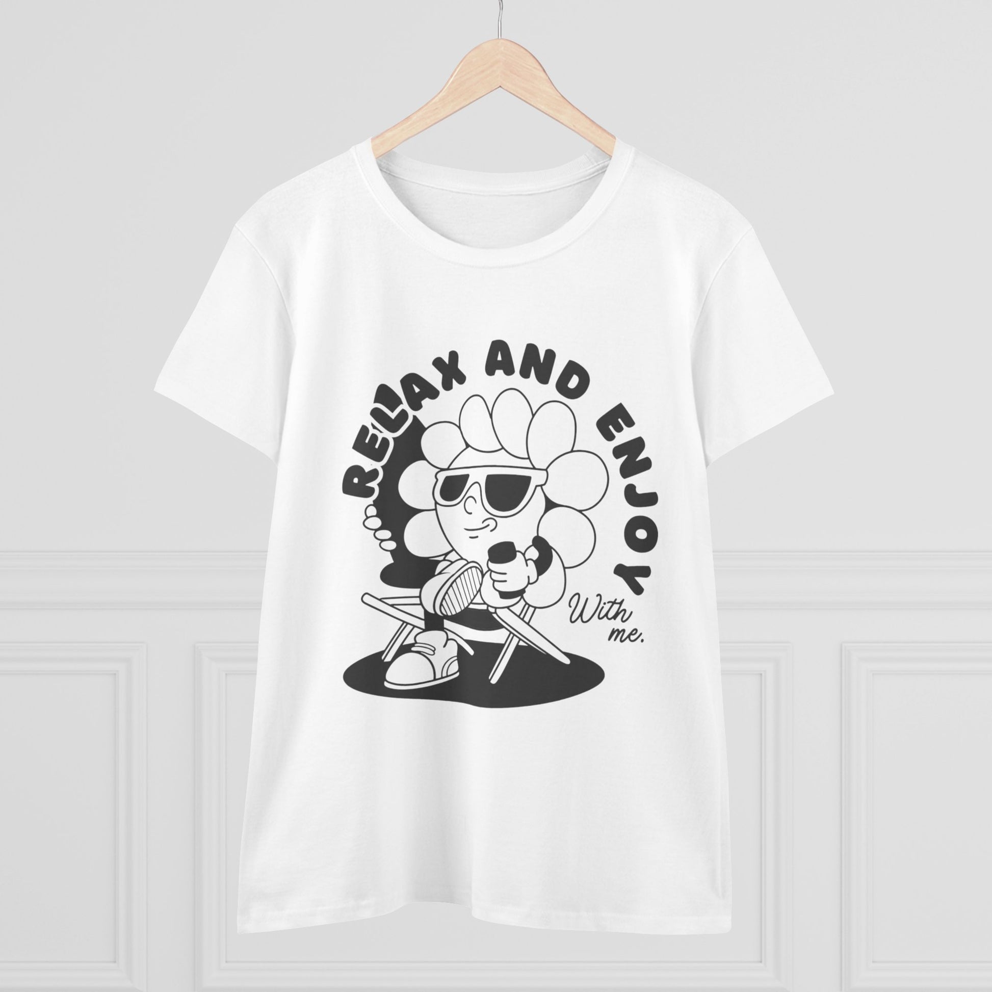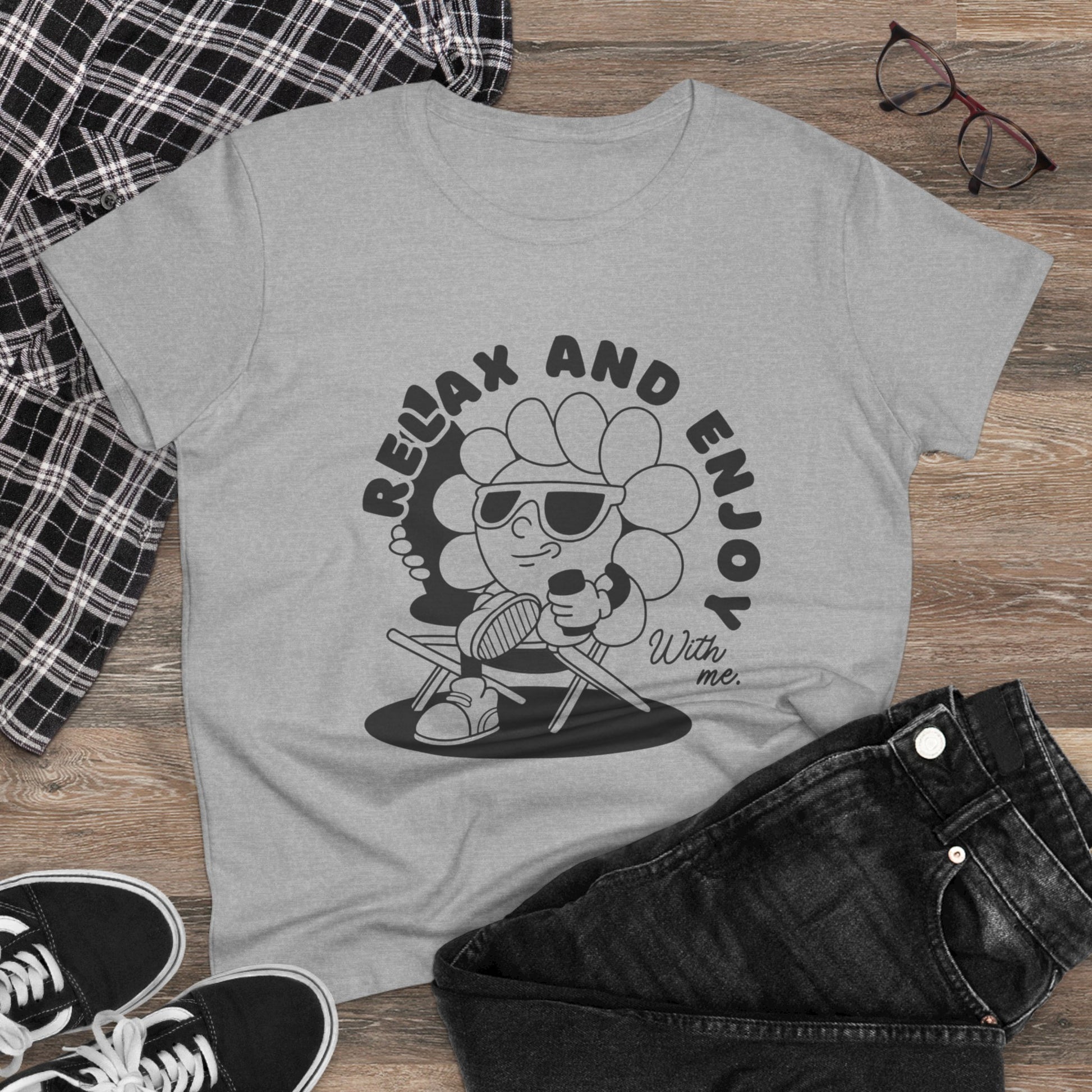 Women's Relax and Enjoy Tee, Cute Graphic T-Shirt, Summer Vibes Top, Gifts for Friends, Casual Everyday Wear, Fun Relaxation Shirt
