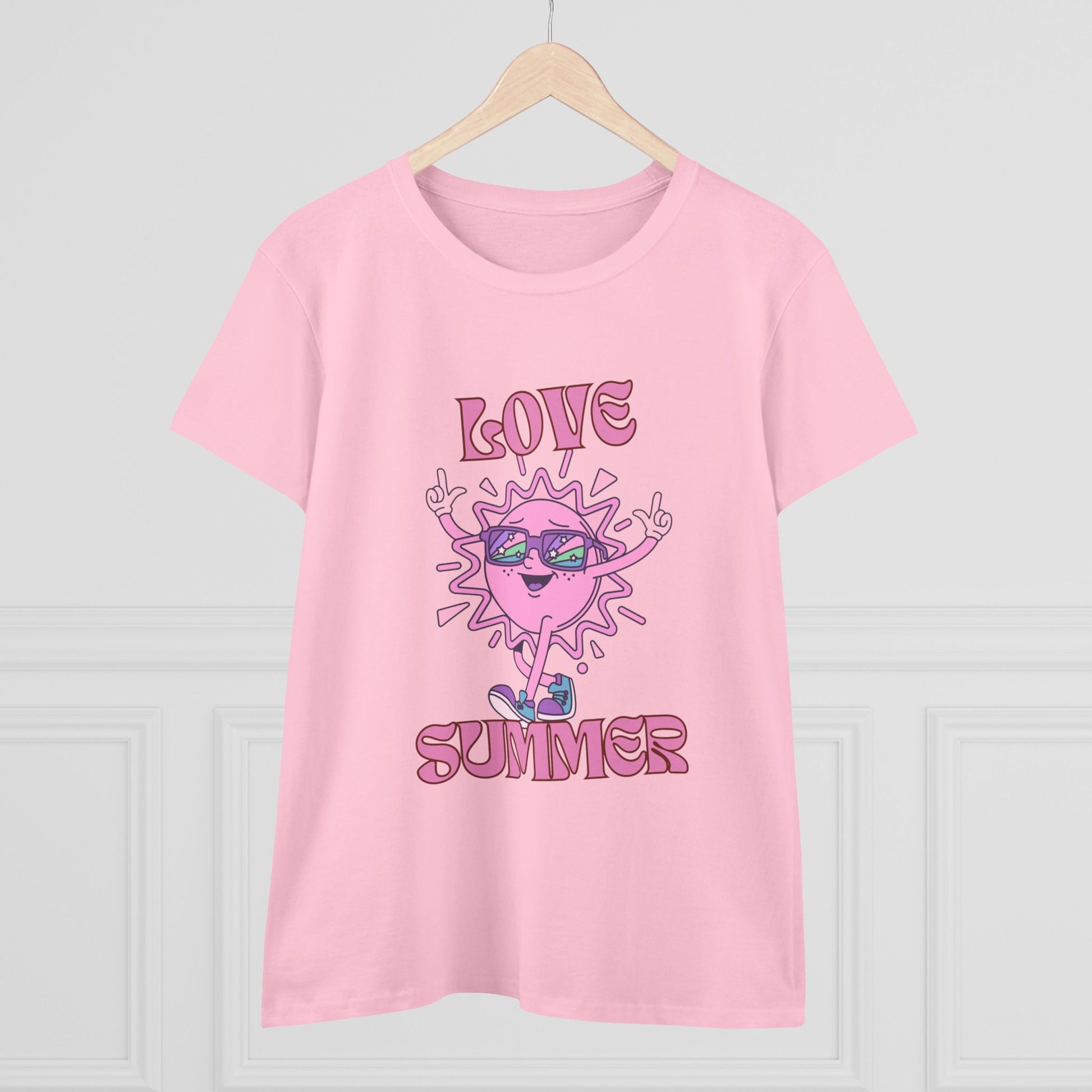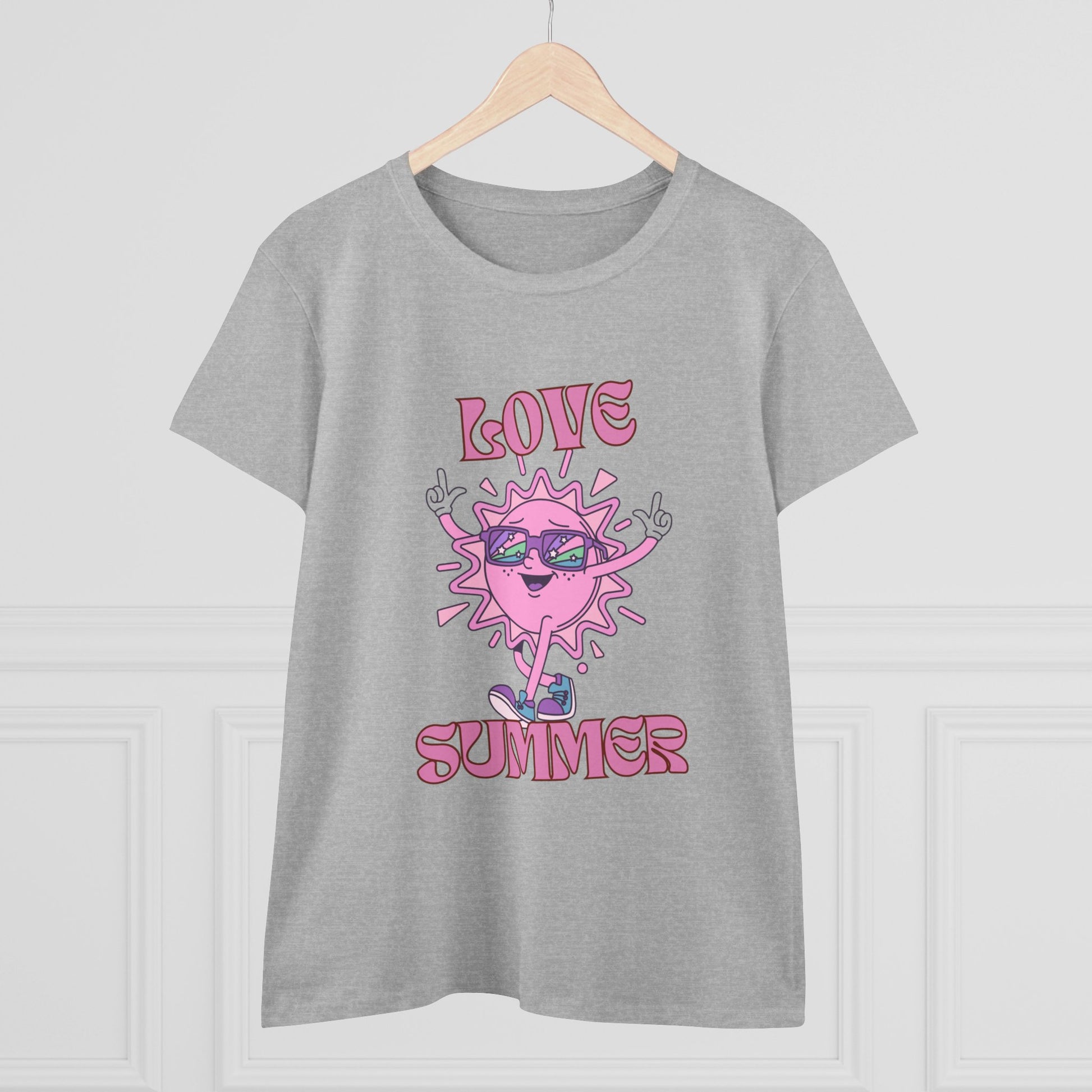 Embrace the sunny vibes of summer with this stylish Women's Midweight Cotton Tee. Perfect for laid-back outings or beach days, it effortlessly combines comfort and creativity with its eye-catching design. The playful graphic celebrates the joy of summer, making it an excellent addition for anyone ready to soak up the sun. Ideal for vacations, summer festivals, or casual gatherings, this tee is a must-have for those who adore warm weather and a laid-back lifestyle. This product is perfect for fashion-forward women looking to express themselves with humor and style. Celebrate birthdays, summer parties, or just the fantastic feeling of sunny days with this delightful tee!